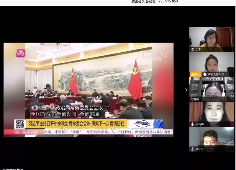 为坚决贯彻落实习近平总书记关于新型冠状病毒肺炎疫情防控工作的重要指示精神、落实市委、市政府关于疫情防控的总体要求和我校应对疫情防控的工作部署,环工171团支部于2月10日晚开展了“众志成城,共克时艰”线上主题团日活动。班主任吴莉娜老师、辅导员丁丁老师和环工171全体成员参加视频会议。