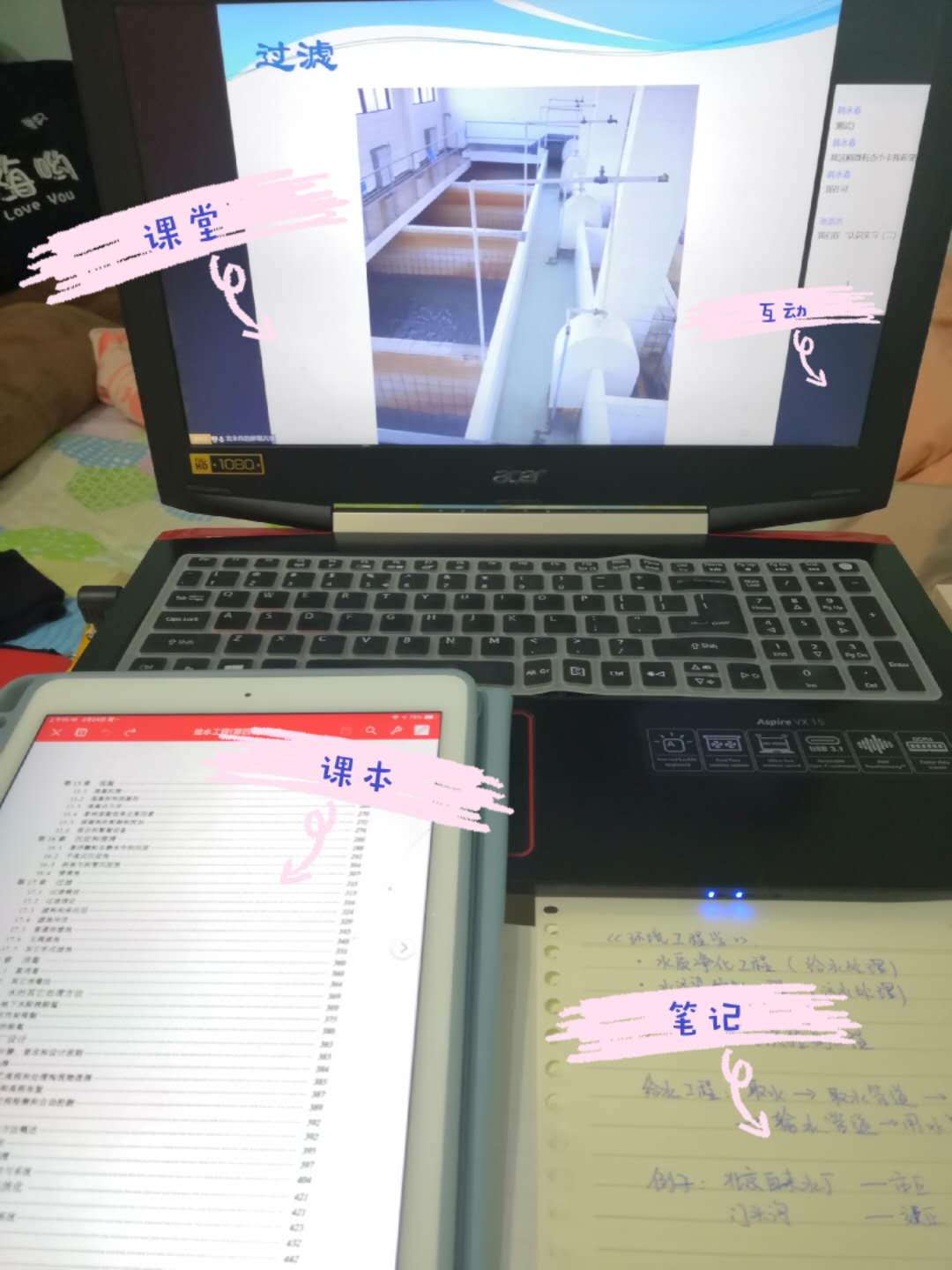 “嗡嗡嗡……”今天的上课铃声变成了手机闹钟。电脑和平板成了我们与老师交流的媒介。在线上教学,我们可以更加及时的向老师反馈提问。然而,面对着冰冷冷地机器,我们也更容易走神分心。因此,要和老师多多互动专注课堂。