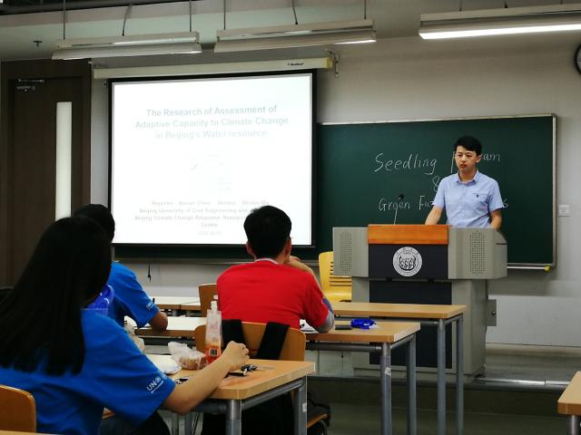 陈伯南、李璐玮、刘羿鑫三名同学应邀参加了此次大会。其中,陈伯南的”北京水资源领域气候变化适应能力评估研究”获得2018年“绿色未来奖”,李璐玮的“饮用水中两种硫醚类嗅味物质的氧化去除研究”获得2017年度“绿苗计划”奖学金。