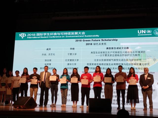 通过积极宣传、校内选拔、精心组织,共选派了38名学生参加大会,加强了与国内外高校及学生组织的联系和交流,取得了丰硕的成果。据悉,本次大会开幕式上,联合国副秘书长、联合国环境署执行主任索尔海姆发来了大会视频致辞,寄语世界环境日和青年学子。他赞扬中国政府在解决塑料污染问题方面的重要举措,鼓励青年学子践行绿色健康生活方式,减少塑料使用。来自全国17所高校环境相关专业30名学生获奖;10支学生团队科研项目获“绿苗计划”奖金资助;10篇研究报告或论文获“绿色未来奖”。
