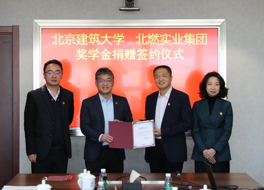 北京北燃实业集团有限公司为我校捐赠30万元设立“北燃实业”企业奖学金。12月10日,校企双方共同举办了“北燃实业”企业奖学金捐赠签约仪式。北燃实业集团有限公司党委副书记、董事、总经理冯军,北京建筑大学党委常委、教育基金会理事长白莽出席仪式并讲话。公司党委副书记、工会主席、董事焦杨主持了签约仪式。