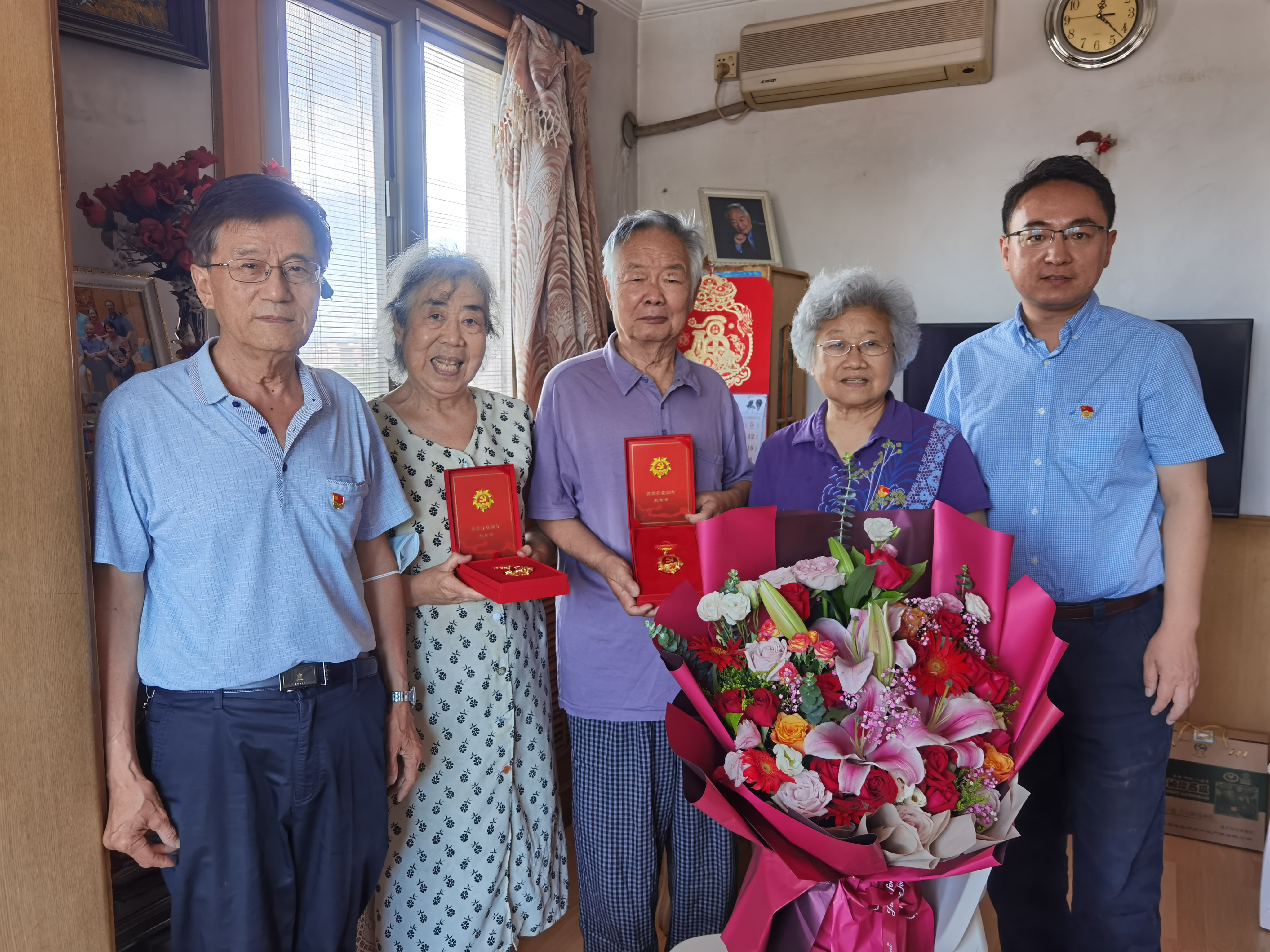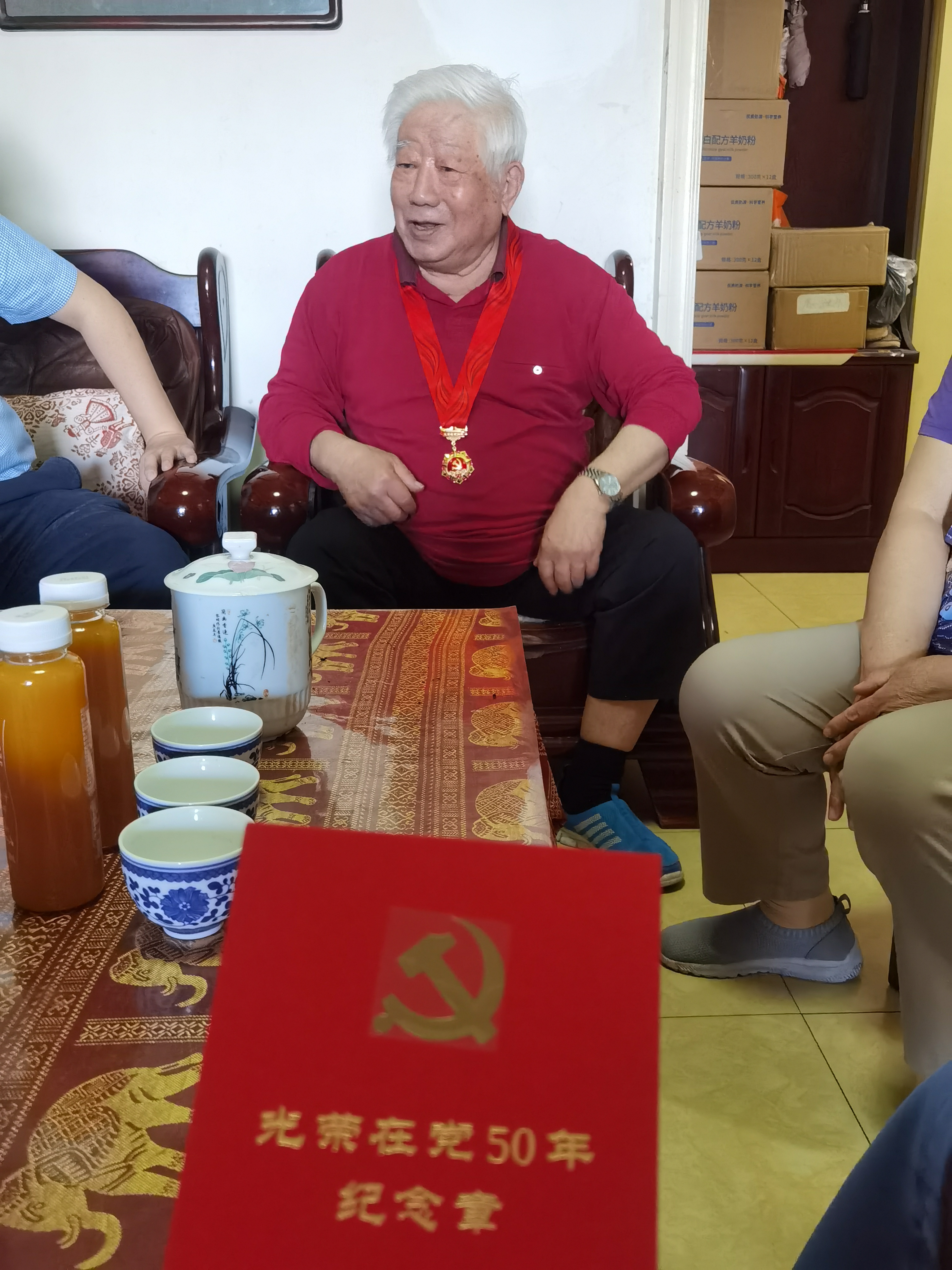 部分退休老党员,为党龄满50年的老党员颁发了“光荣在党50年”纪念章,并送上组织的关怀和节日的问候。