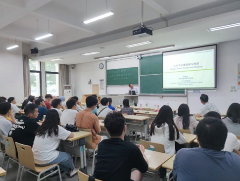 随后,郝晓地教授主持了李富生教授主题为《日本下水道系统与排涝》学术讲座。李教授分别从日本防洪总目标及政策、防洪措施完成率、地区防洪优先级分类、流域治水规划、合流制向分流制演变历程、地下神宫式的埼玉县地下大型雨水调蓄池等方面,详细讲解了日本的下水道系统与排涝现状。并与中国(海绵城市等)、欧洲和韩国等国家的防洪策略进行对比,指出日本排涝重点在于快速排洪、排涝,消纳、储存降水为次要目的。此外,李富生教授此次来访将进一步加强双方在学科建设和人才培养方面的合作,我院20级博士研究生王向阳已获得国家留学基金委的资助,即将赴岐阜大学进行为期一年的联合培养和学习。此次交流期间,李富生教授也对培养方案和实验计划进行了沟通和确定。