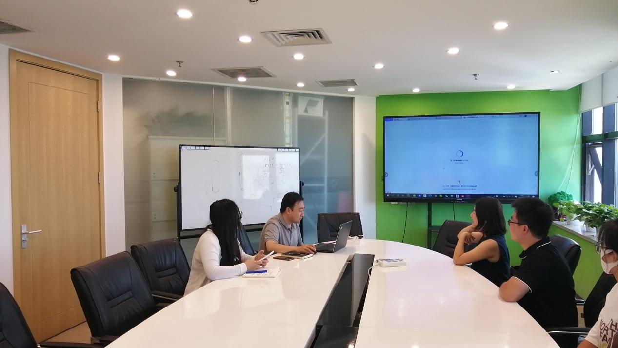 实践团同学在新源集团录制访谈视频,记录招聘经理介绍有关毕业生的就业概况以及组织本校毕业生进行问卷调查。