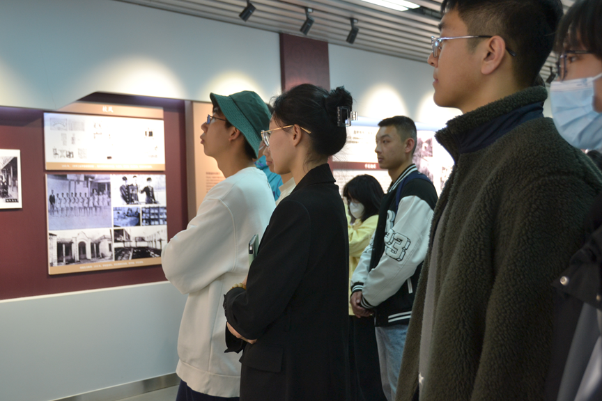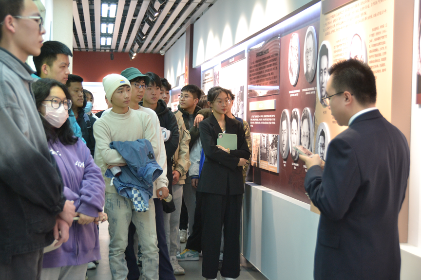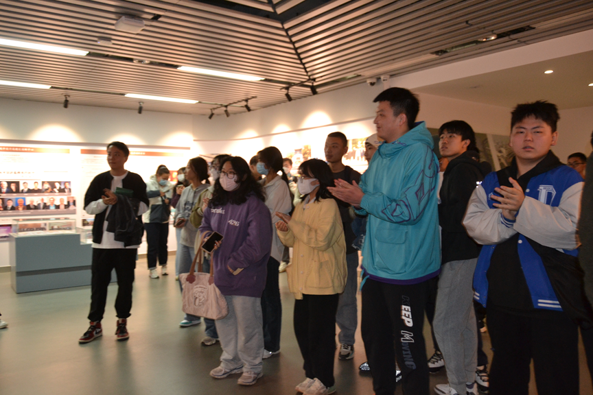 副书记孙强、辅导员齐欣宇带队,校史文化宣讲员崔俊鸿负责讲解。