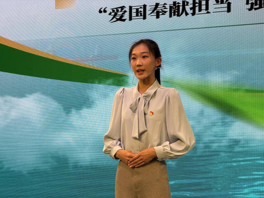 张雨婷的获奖微课紧密围绕“青春底色的碧水长征”这一鲜明主题,立足环境与能源工程学科背景,巧妙融合了新时代生态文明建设思想与青年责任担当。她以富有感染力的语言,结合国家“双碳”战略目标与绿色发展前沿,生动阐释了环能学子如何将专业知识转化为建设美丽中国的实践力量,深刻解读了新时代青年党员爱国情怀、奉献精神与专业报国的统一路径。其课程内容充实、逻辑清晰、感染力强,赢得了评委和观众的认可。