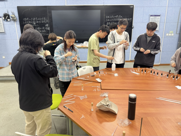 在制作过程中,同学们认真研读黑板上的制作流程,认真、严谨的制作属于自己的一瓶香水。整个活动有序进行,同学们也相互交流各自制作的不同香水。整个活动促进了同学们的相互交流,相互谦让,形成一个有序、有趣的活动现场。