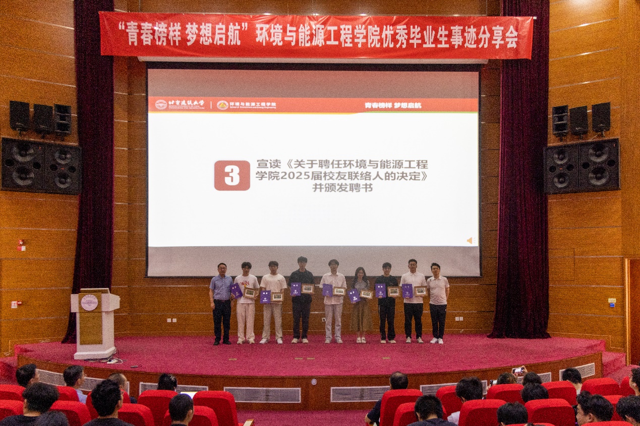 聘任水211冯莹等15名优秀毕业生担任2025届校友联络人。郝迈宣读聘任决定后,黄兴为校友联络人代表颁发聘书,冯宏岳赠送专属纪念品。