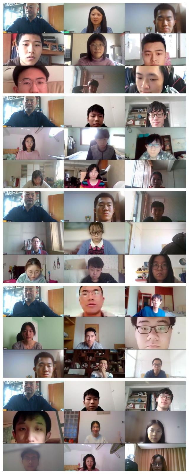 突如其来的疫情改变了我们的生活、工作和学习节奏。在经历了最漫长的冬天之后,学生和老师们都从来没有像现在这样盼望着开学。2020年2月26日是我难忘的一天,从教23年来第一次线上直播教学。我提前整理了书房、调试了电脑,还特意沐浴更衣,居然还有点紧张了,满满的仪式感。我利用腾讯会议直播结合云班课教学,学生到的很齐,都能提前上线。坐着面对屏幕讲课看不到学生也听不到他们的说话,刚开始还挺不适应。我就时不时的停下来点一个学生回答问题,一是听到他们的反馈才能感觉到我是在上课,二是想给学生一点压力防止他们走神或者悄悄溜走。课间休息的时候,我让学生们打开摄像头,我们一起在电脑屏幕上截屏合影留念。课后在云班课发布了直播教学效果问卷调查,同学们的反馈还不错,53%的学生认为直播教学效果不亚于课堂面授。这一天有点累,但是很充实,感觉很奇妙,应该是值得纪念的一天。