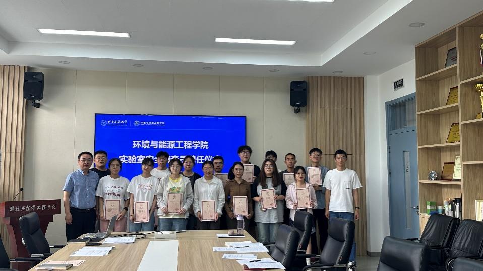 首先,由杨琎老师宣读《关于选聘王晓哲等16名同学为院级实验室安全督查员的通知》,并由冯宏岳为实验室安全督查员逐一颁发聘书。聘书颁发完毕后,市政22王晓哲作为代表交流发言,他表示将坚决担起这份责任和使命,努力在日后更严格执行实验室安全各项规定。