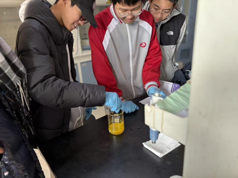 化学实验室,开展“黄金雨”实验。授课老师首先为同学们讲解了实验原理,随后带领同学们一起进行实验操作,同学们满怀兴趣地投入这场化学元素的视觉诗篇之中,不仅学到了化学知识,还锻炼了动手能力,明确了化学实验的安全准则,更重要的是,每个人还收获了一瓶自己制作的“黄金雨”,可以说是满载而归。
