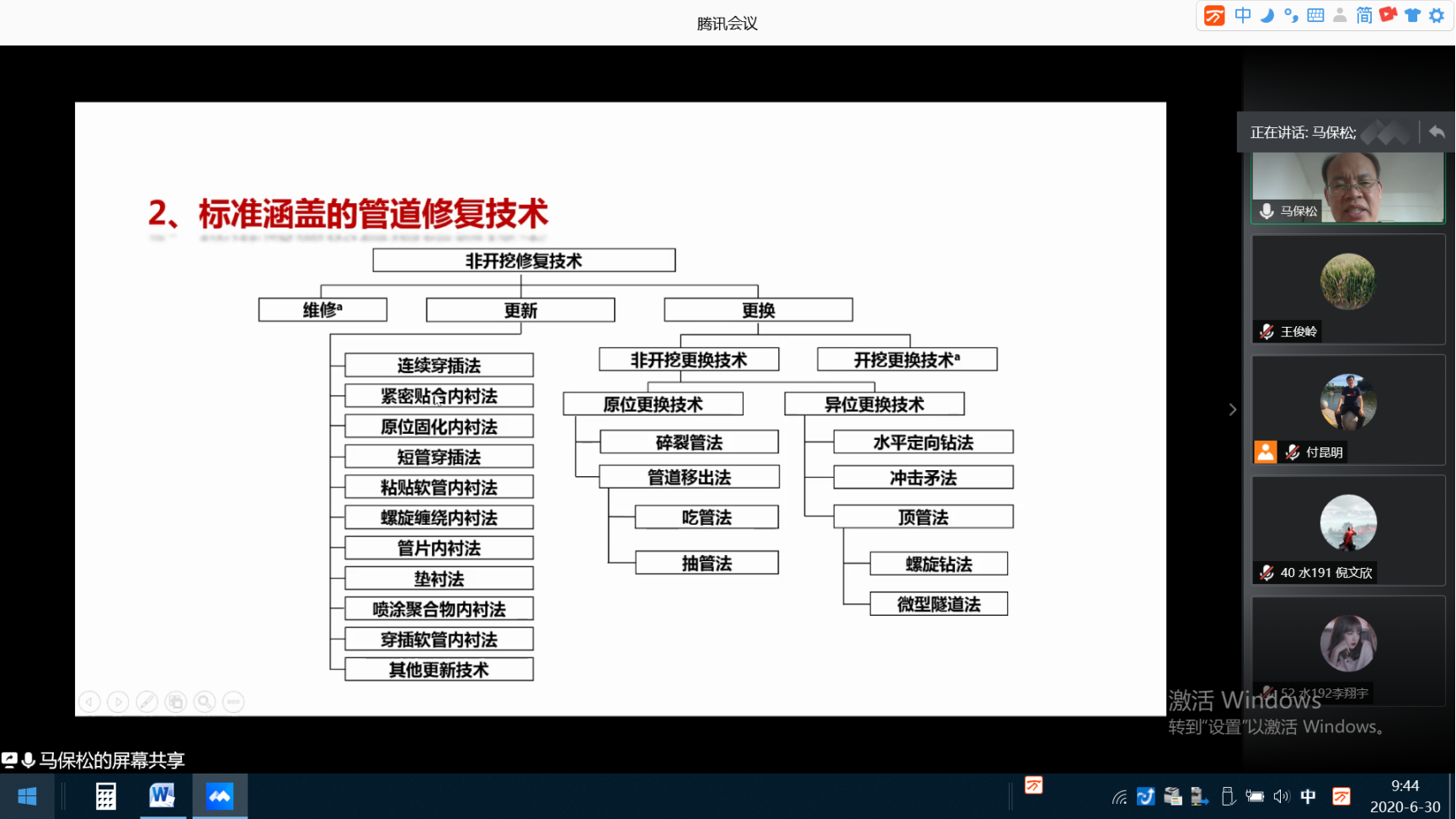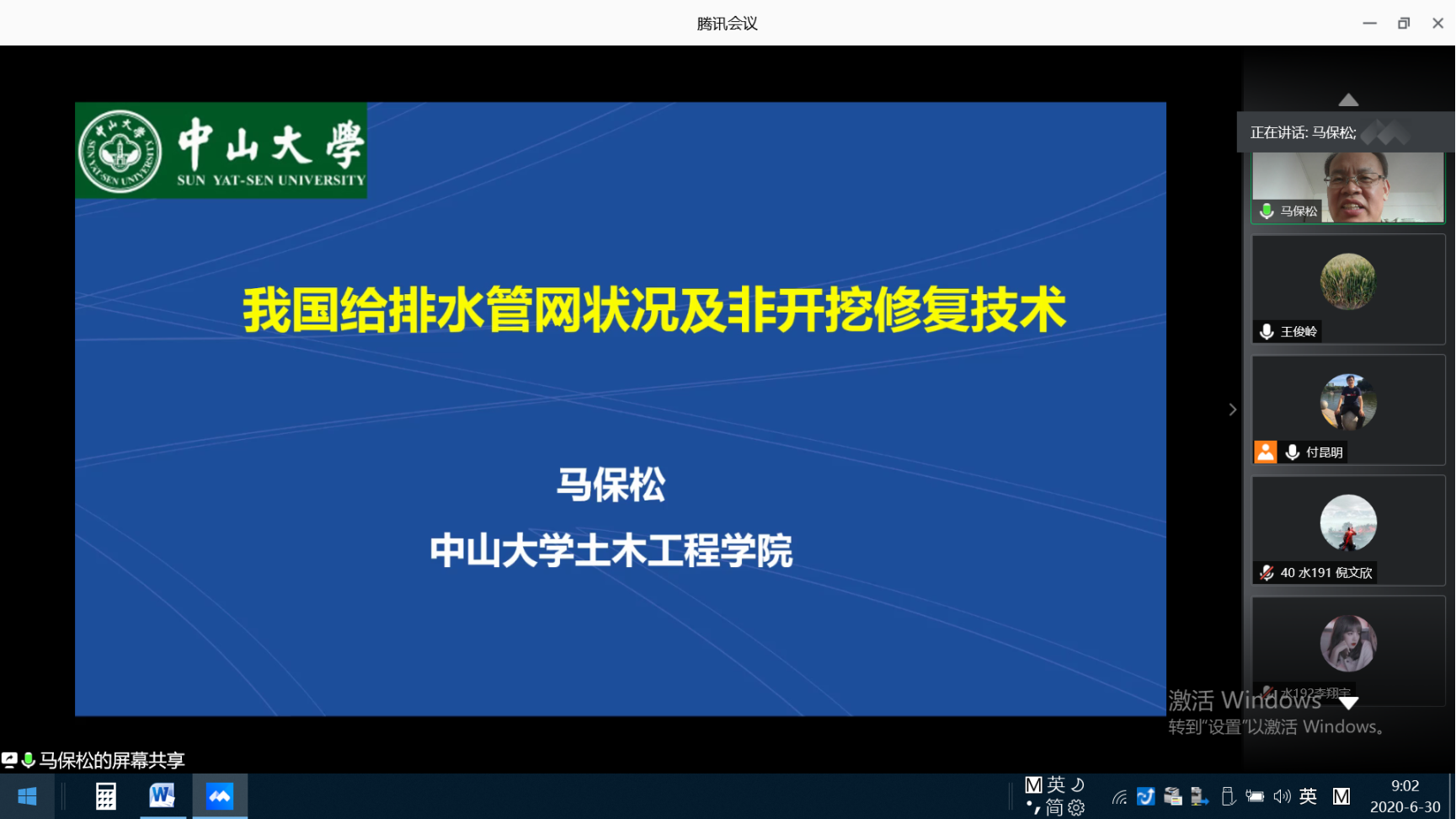 6月30日上午,市政工程系邀请国内外知名非开挖技术专家马保松教授给本科生作了一个精彩的在线讲座。王俊岭和付昆明老师主持了讲座。马教授讲座主题:我国给排水管网状况及非开挖修复技术。马保松教授就国内城市给排水管道老化的严峻状况,维护管理较弱的现状,管道修复的常规开挖技术缺陷,管道修复的非开挖技术国内外进展,若干主要的管道非开挖修复技术的应用特点与案例介绍等,为给排水科学与工程专业19级的学生进行了细致的讲解,同学们认真聆听了讲座。通过讲座,加深了学生对给排水科学与工程专业的认识,同时学习了国内外先进的管道修复专业知识,获益匪浅。