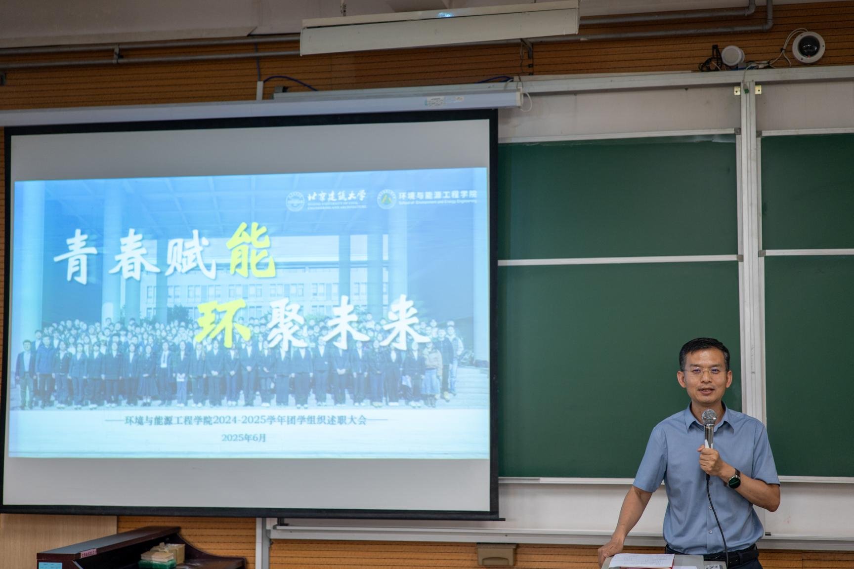 会议伊始,党委书记冯宏岳发表致辞。他充分肯定了过去一年团学组织在思想引领、学风建设、文体活动和志愿服务等方面的突出贡献。他特别强调,今年正值中国人民抗日战争暨世界反法西斯战争胜利80周年,青年学子应铭记历史、传承精神,将个人理想融入国家“双碳”战略大局。站在新的起点,冯宏岳对团学骨干提出三点期望:一要坚定信念,做胸怀家国的引领者;二要锐意创新,做学风建设的推动者和科技创新的奋斗者;三要扎根同学,真正成为青年的贴心人。