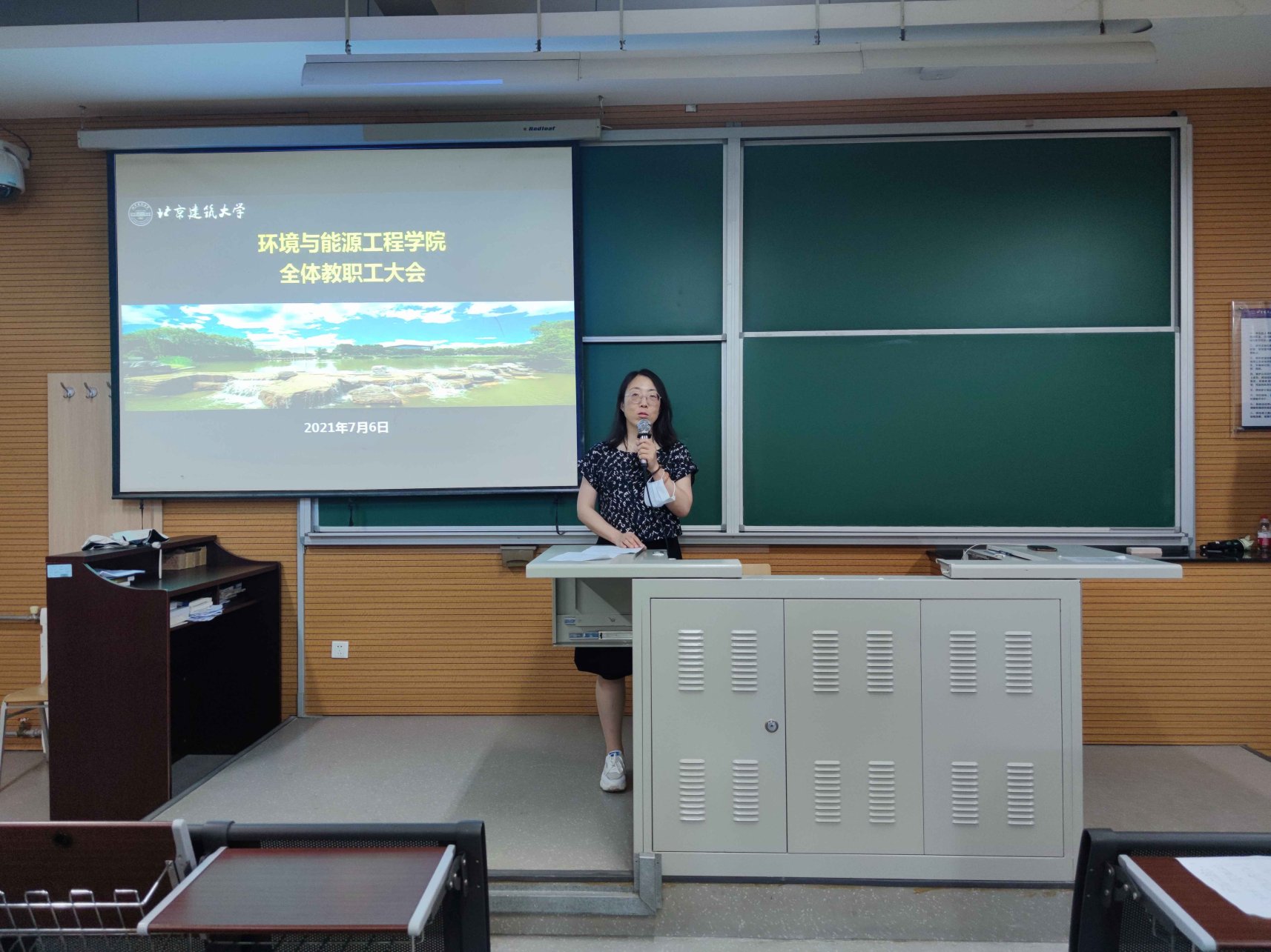 全体教职工参会会议,会议由斗地主网页版