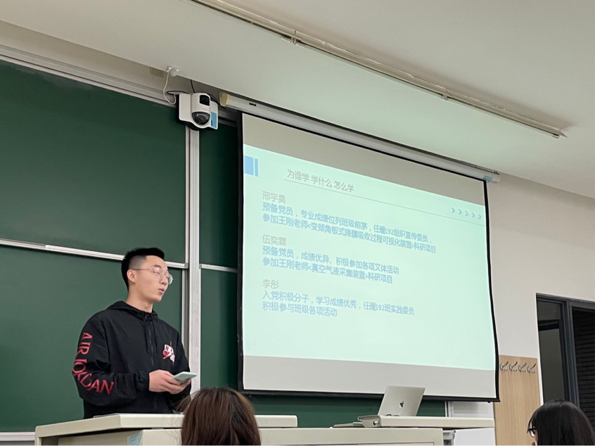 团支书贾韵聪对班内存在的一些问题做了改进措施落实并进行了团日主题工作总结,并由学委王林领读学风倡议书。