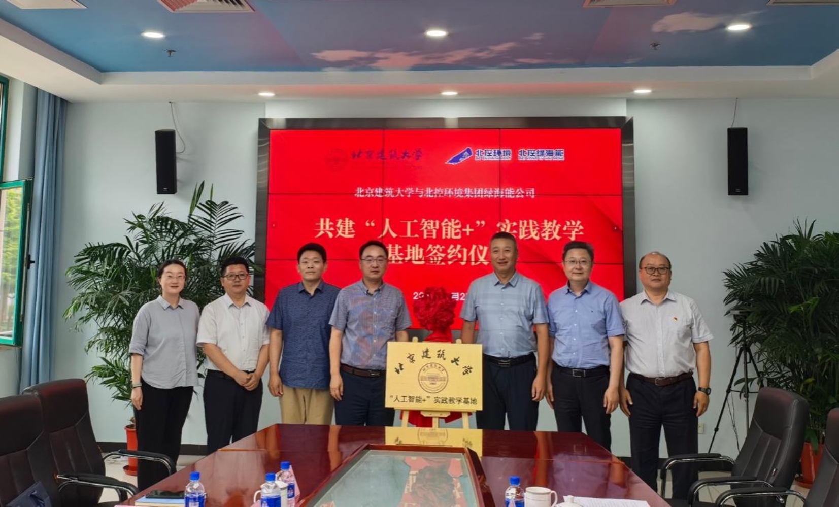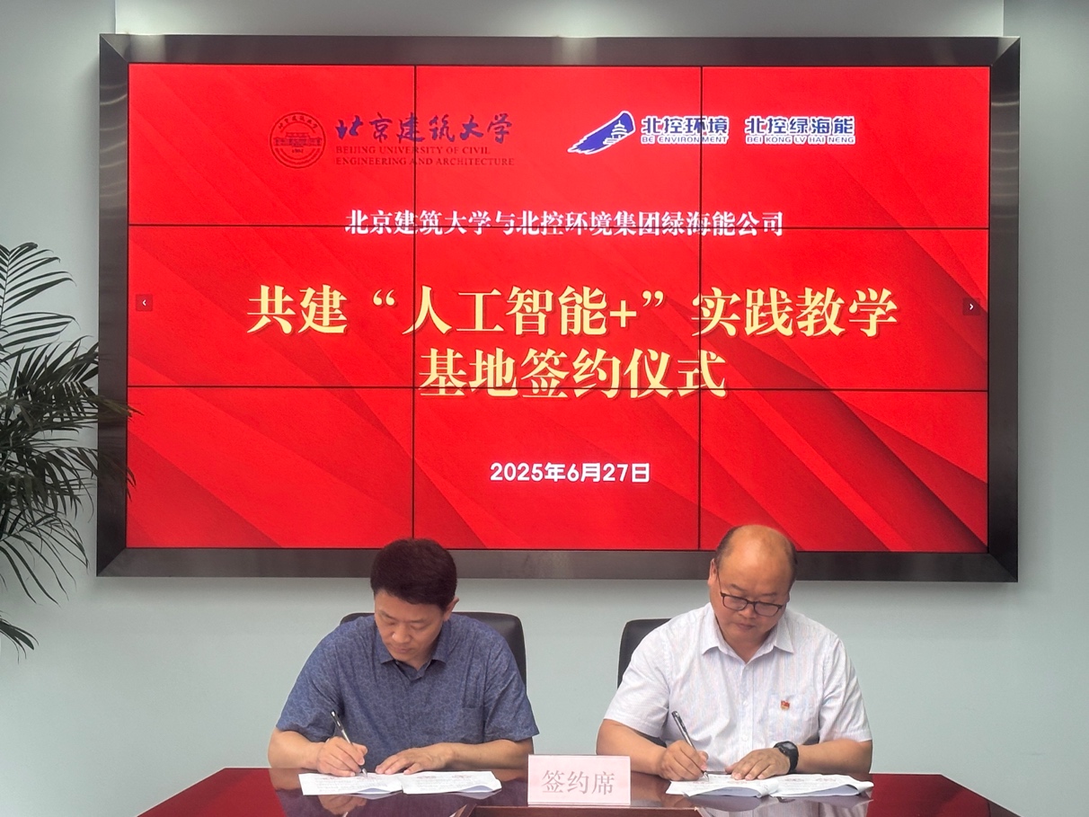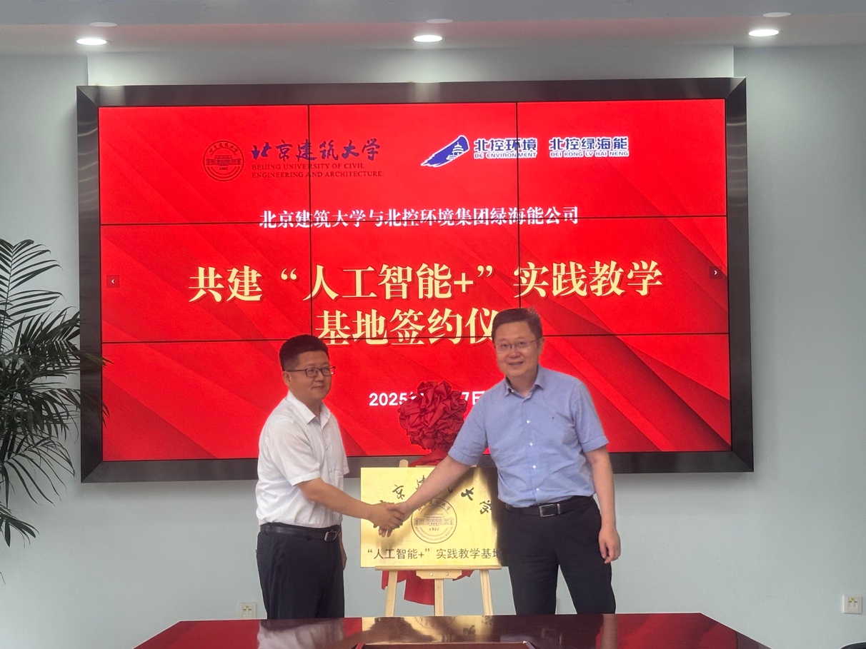随后,在与会嘉宾的见证下,仇付国副院长与武继旭总经理代表双方正式签署合作协议,进一步明确了合作方式与双方职责;王建龙与张坤共同为北京建筑大学“人工智能+”实践教学基地揭牌。此次活动不仅为学生搭建了宝贵的实践平台,也为北控绿海能公司注入了前沿的科研力量与技术支持。