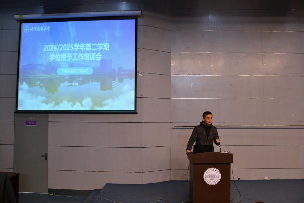 会上,胡文举对2025届研究生学位授予工作的总体情况进行了阐述,并强调了学位申请的重要性。他要求同学们必须认真对待学位申请,端正态度,合理规划时间,确保论文撰写质量,规范提交申请材料,以便顺利通过论文答辩,最终获得学位。