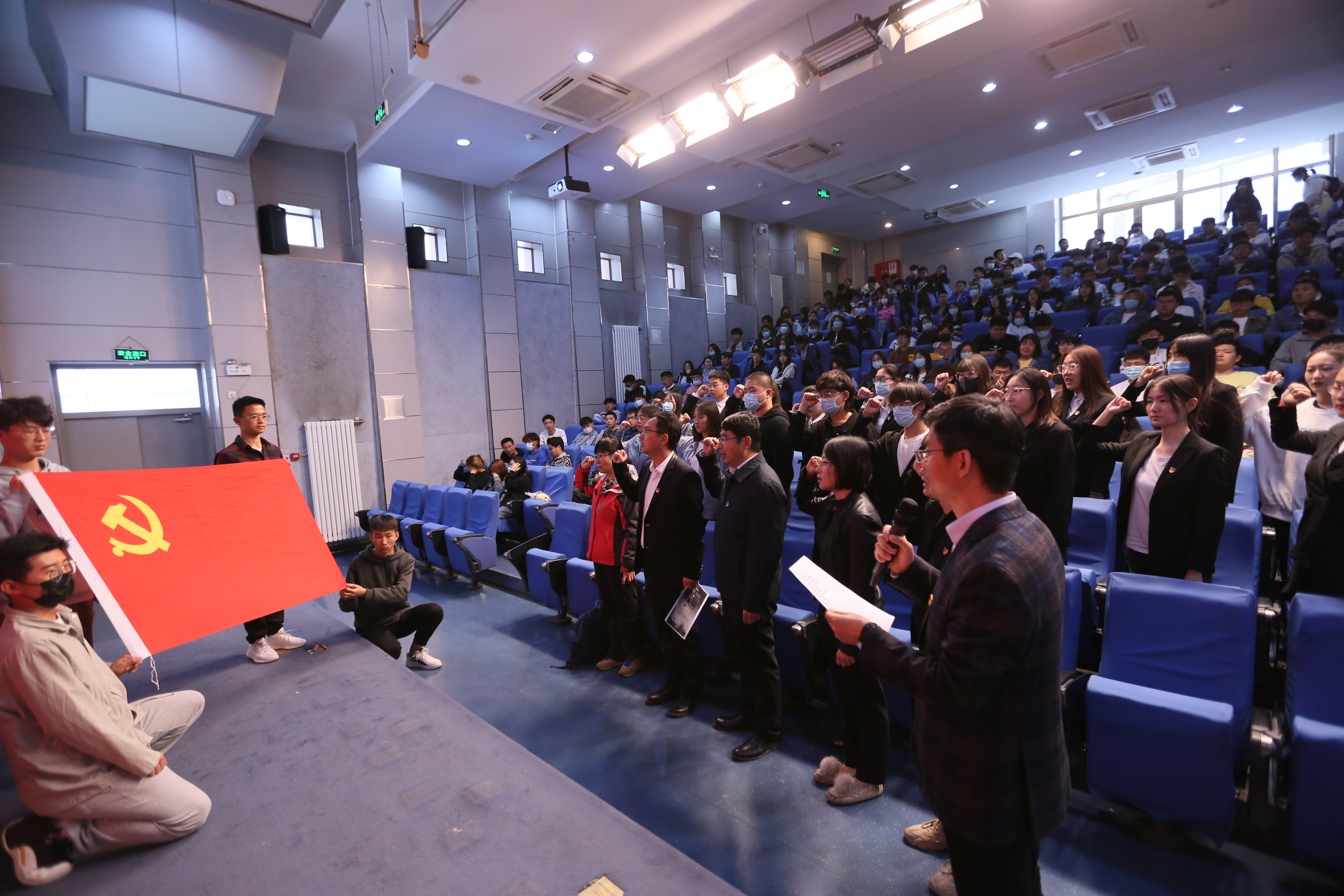 党委书记冯宏岳、副书记梁凯、专职组织员孙强、有关支部书记和今年新发展的党员、20级本科生等近300人参加活动。