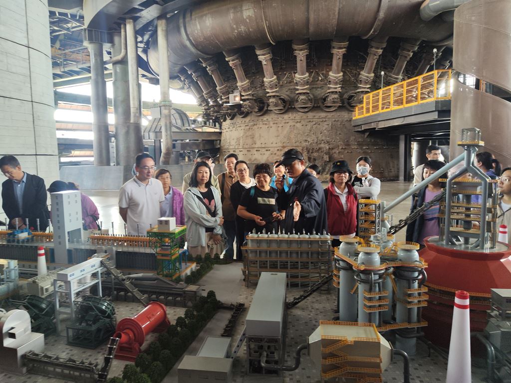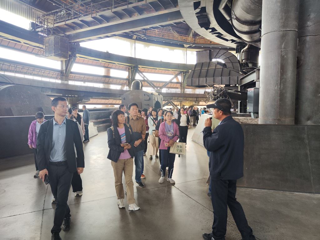 三高炉作为首钢的明星高炉,曾是首钢第一座炉容超过2500立方米的现代化大型高炉,现已化身为京西热门的旅游休闲场所。在专业讲解员的引导下,教师们登临三高炉40米观景平台,360度沉浸式俯瞰首钢园区全貌。远眺永定河、新首钢大桥、滑雪大跳台,感受着工业文明与自然景观的和谐共生。随着讲解老师的细致介绍,大家认真聆听三高炉以及配套设施的辉煌,体会首钢工人的艰辛。特别是介绍到热风炉上高温炙烤下的天车工、热风炉内穿着保温服的抢修工时,不约而同地为当年的首钢工人鼓掌。在丝丝秋风中,大家从内心感受着曾经的工业辉煌与现代城市复兴的改革转型之决绝与成效。随后,教师们进入钢铁巨兽的心脏,在炉内9.7米高的出铁平台上,细细体会在铁花飞溅的五十多度高温下,炉前工二十多年的坚守。首钢工人用他们的辛勤和汗水,诠释对工作的热爱与执着。正是这些平凡岗位上的执着坚守,爱岗敬业的奉献精神,构成了社会稳定发展的基石。