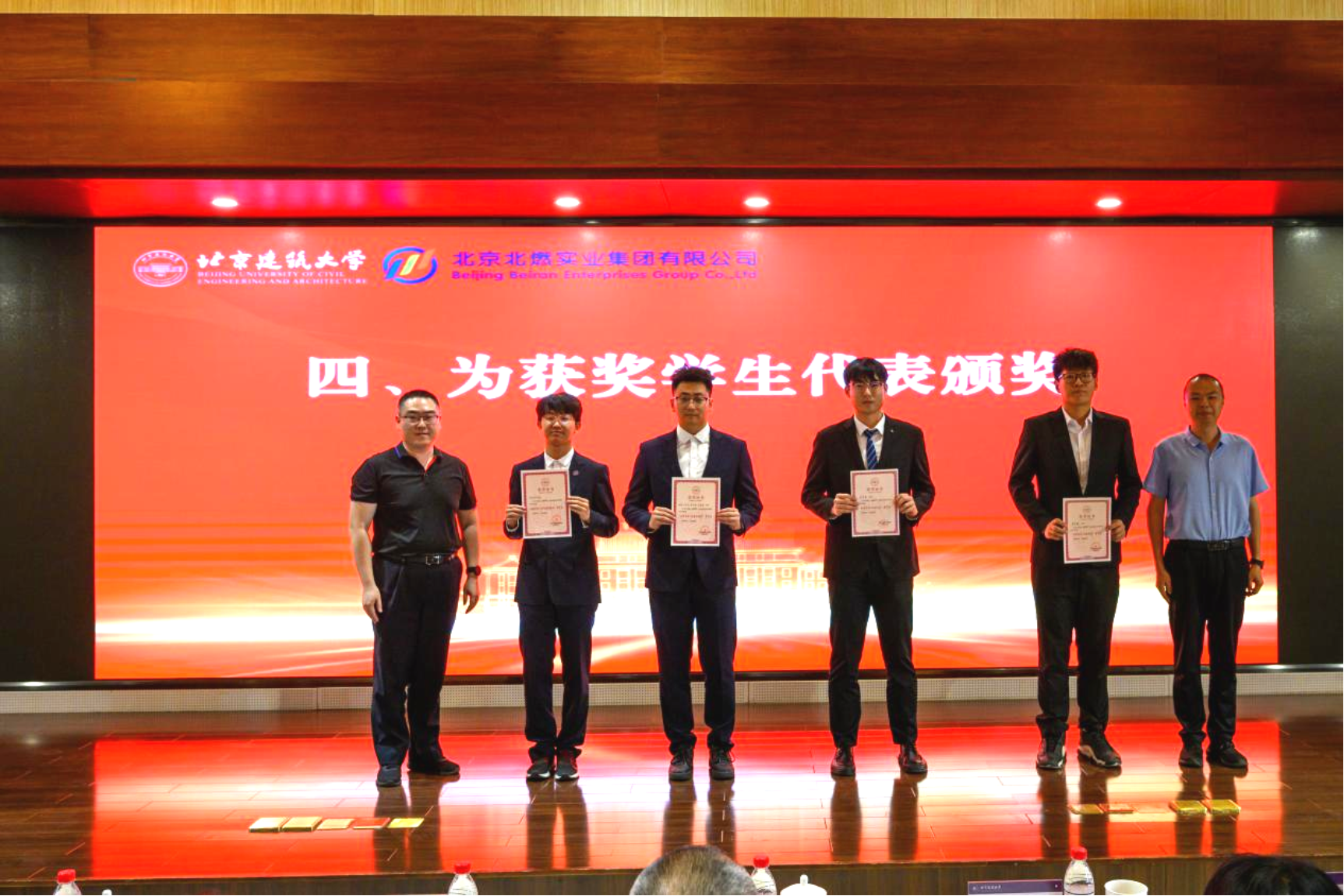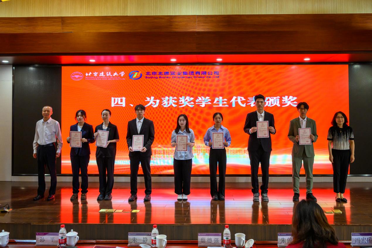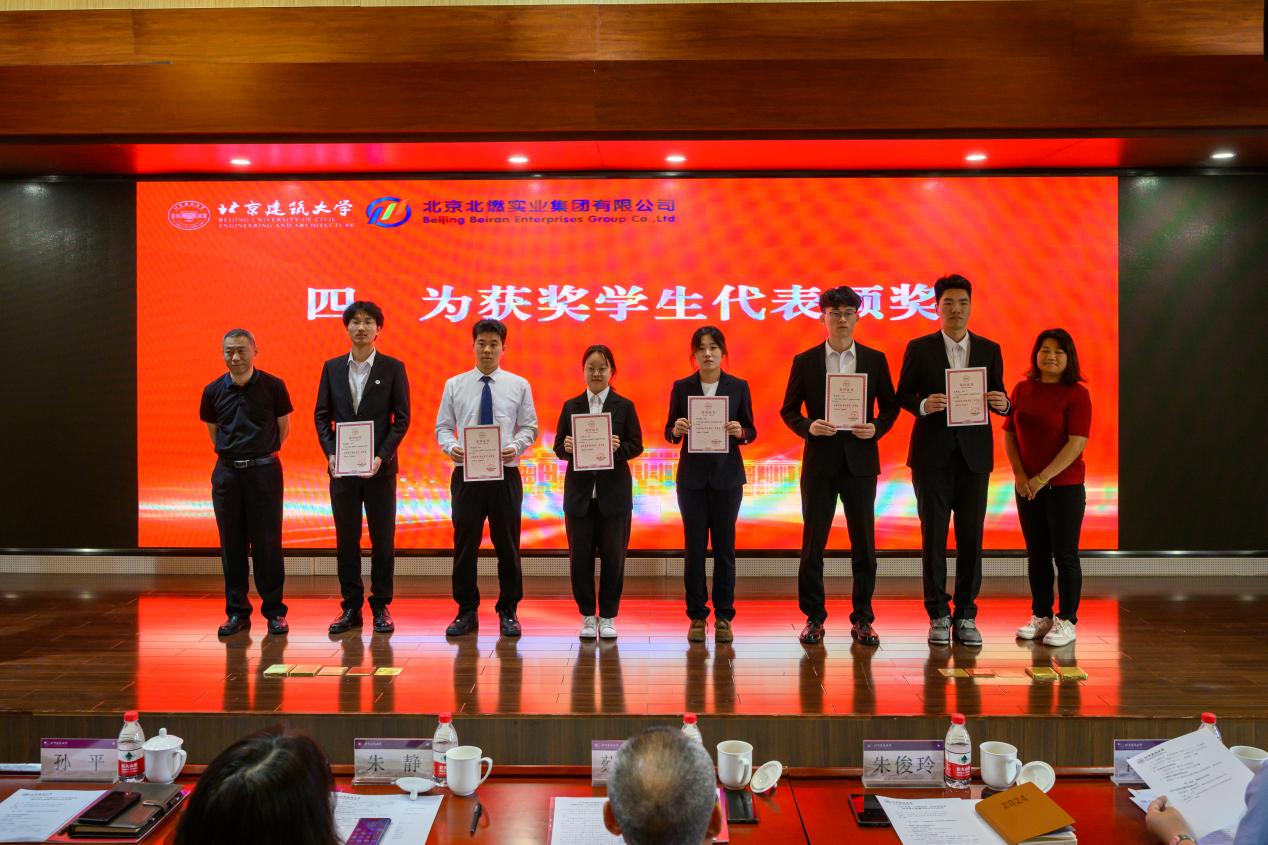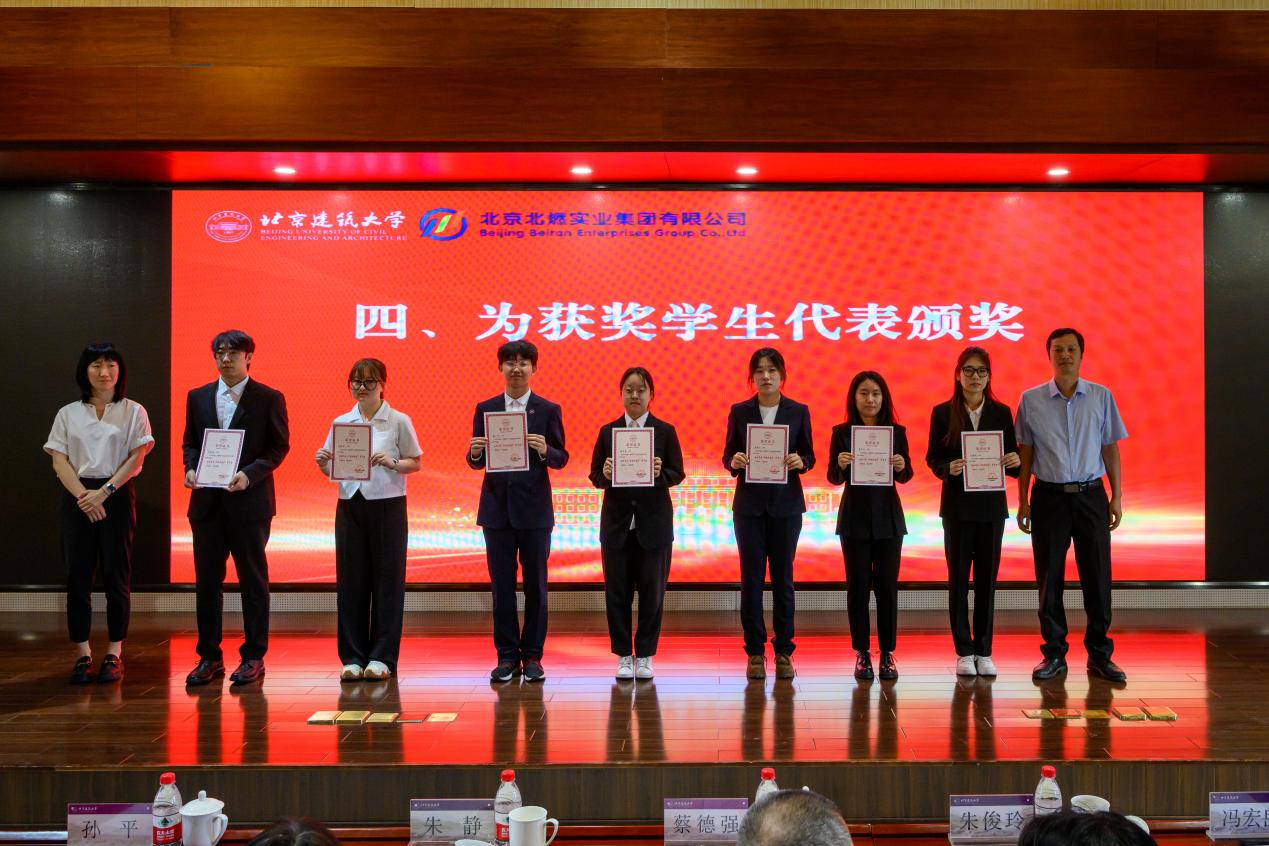 北京北燃实业集团有限公司党委常委、副总经理蔡德强、北京建筑大学党委常委、副校长朱静共同为“北燃实业”企业奖学金一、二、三等奖获奖学生颁奖。