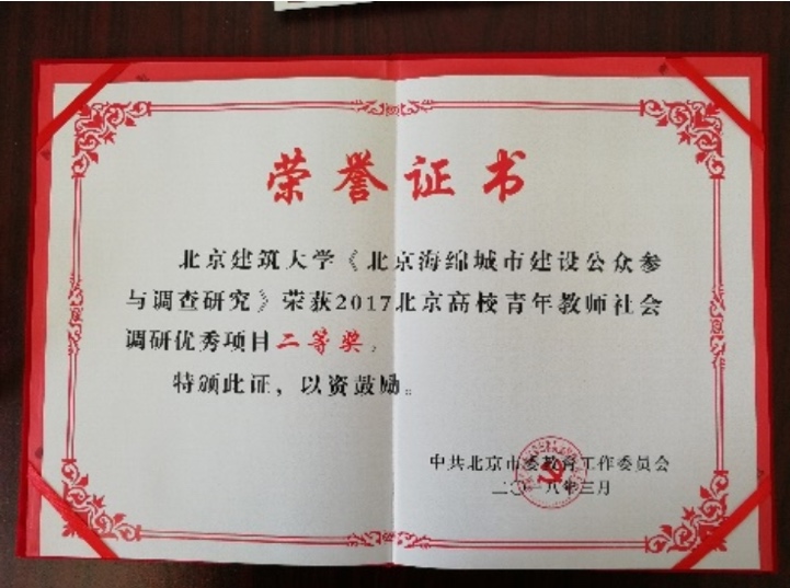 近5年,获得华夏奖、北京科技进步奖等省部级奖项4项;省部级以上纵向课题35项;承担国家自然科学基金(含面上、青年)人均1.5项;各类横向课题67项,高倍引论文11篇;主编国家标准3部,参编各类规范标准8部。专业教师在国家海绵城市建设、无废城市、雄安新区、北京城市副中心、大兴新机场等重大项目中做出贡献。