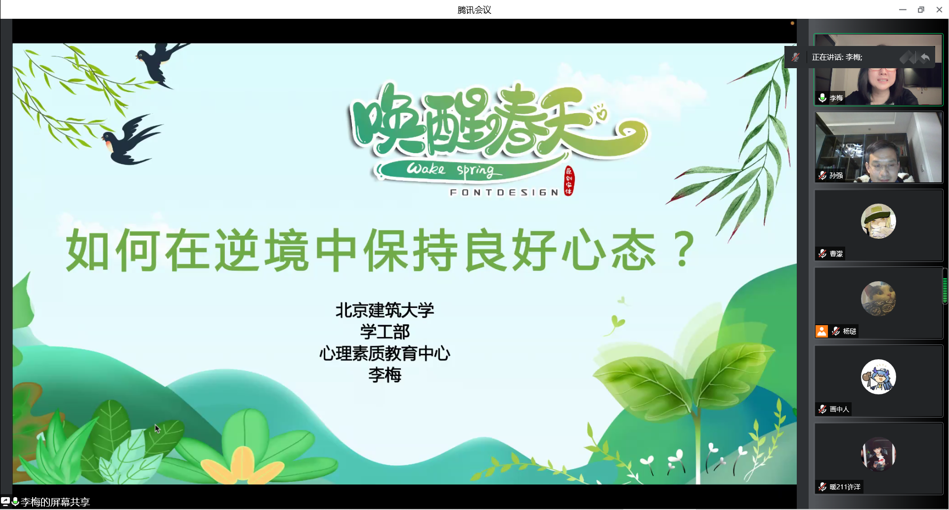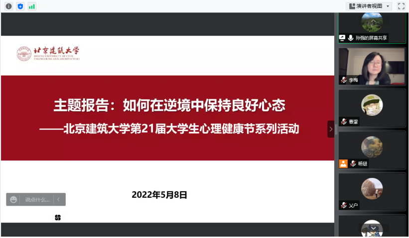 为增强学生应对疫情和克服困难的信念信心,5月8日晚,大学生心理素质教育中心主任李梅副教授在线开展了以“如何在逆境中保持良好的心态”为主题的心理讲座。心理委员、学生骨干以及在校学生等近170名同学聆听了讲座,共同体验自己的情绪,学习了改善情绪的方法。讲座由斗地主网页版