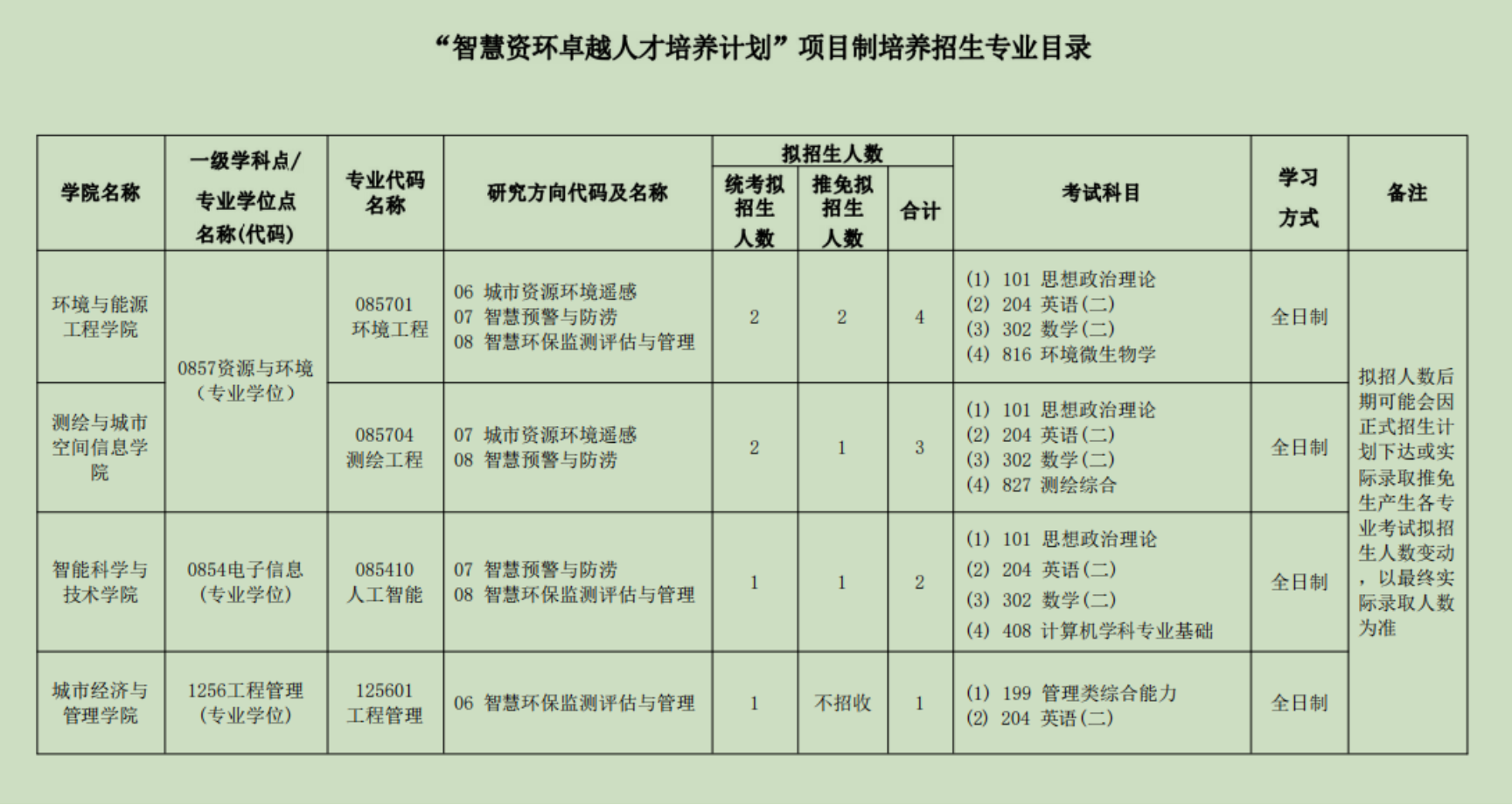 面向专业学位研究生启动实施“卓越人才培养计划”项目,在“主动式建筑智慧运维”、“智能建筑绿色消纳”、“智慧预警与防涝”、“智慧环保监测评估与管理”研究方向启动招生。