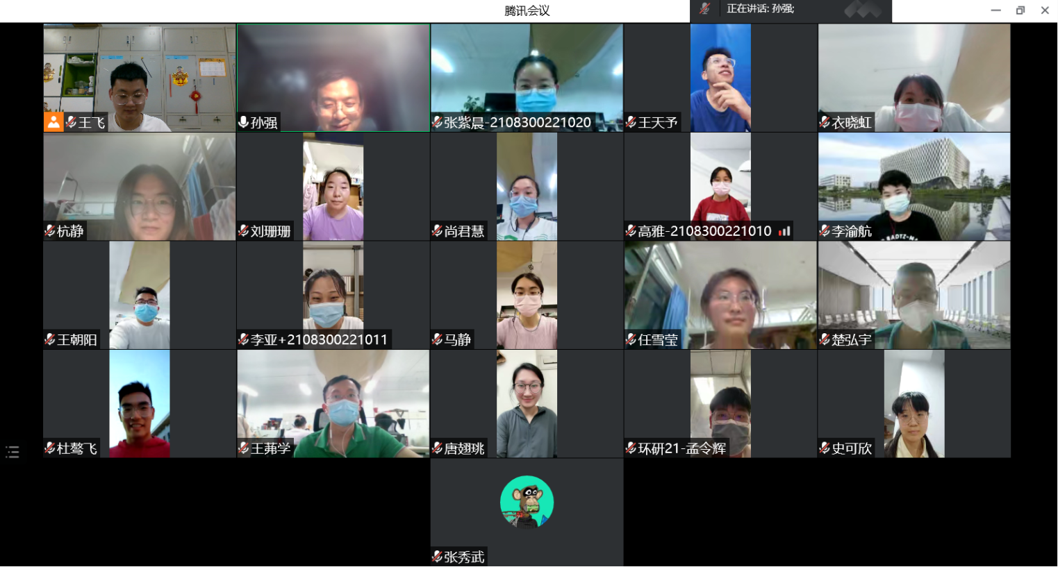 会上,孙强老师向参会师生就目前新冠肺炎疫情防控形势、新时代青年的责任与担当进行了交流研讨,并结合近期发生的涉疫案例对当下校园封闭管理、核酸检测等校园防疫政策的必要性和重要性进行了解答。他强调,广大师生要统一思想,坚决贯彻“动态清零”总方针,积极配合斗地主网页版防疫政策要求,按照属地和斗地主网页版要求完成核酸检测、近期不订外卖、减少网购、每天健康打卡。全体党员、团员和学生骨干要以身作则,积极发挥先锋模范带头作用。此外,他还与学生就如何疏导疫情防控带来的心理焦虑、科研学习、就业问题等进行了沟通,确保在校生的学习、生活有序进展。