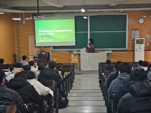 1月10日,北京北排清洁能源投资有限公司总经理王绕校友以“库网河厂一体化有效保障水生态持续改善”为主题,结合实际案例,为学生讲解了城镇水生态问题及综合解决方案。