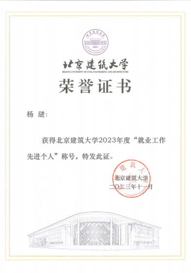 在2023年度招生就业工作总结暨2024年工作部署会上荣获北京建筑大学“就业工作先进集体”。杨琎、王文亮获北京建筑大学“就业工作先进个人”。斗地主网页版