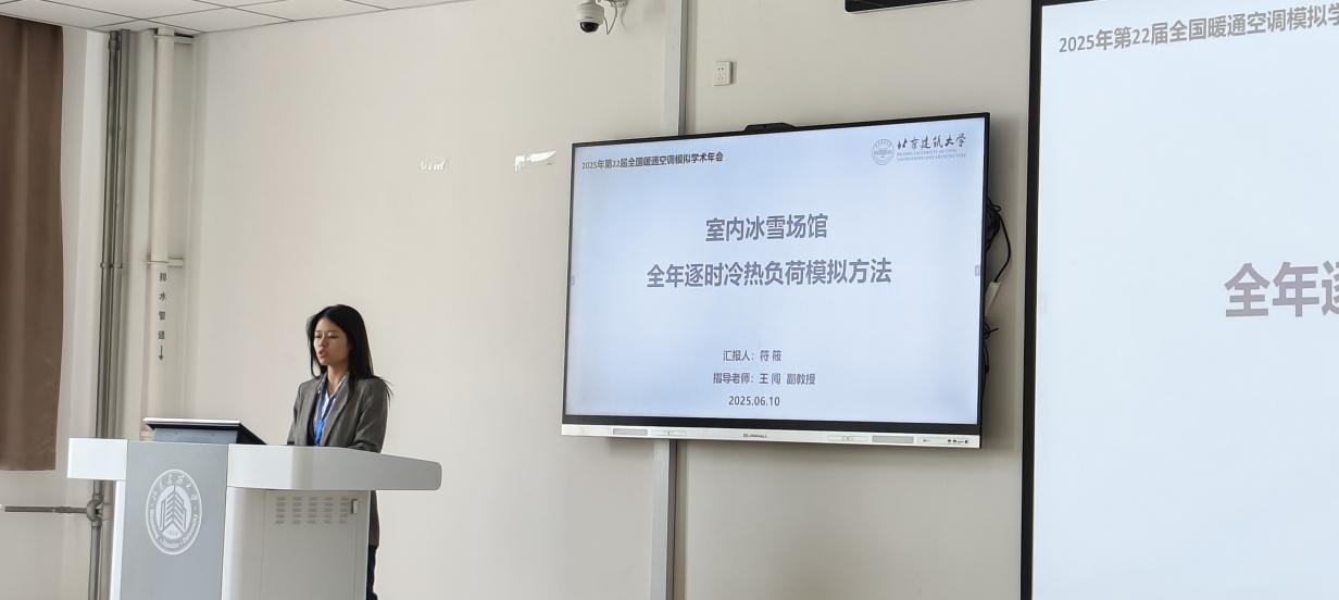 安晶晶老师担任《Building Simulation》期刊专题论坛分会场主席,与业内专家共同探讨学术资源共享与产学研合作。我院硕士研究生符筱(导师:王闯)、李涵(导师:安晶晶)、王悦莹(导师:王闯)分别围绕 “室内冰雪场馆全年逐时冷热负荷模拟方法”、“辐射冷却技术与建筑围护结构隔热综合节能效果的模拟分析”、“集装箱式临时建筑节能设计优化研究”三篇论文做口头报告,成果得到与会专家肯定,彰显了斗地主网页版