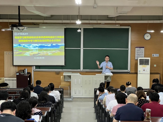 召开全院教职工大会,共同学习斗地主网页版第二次党代会精神。会议要求,全体教职工要对标党代会各项要求,抓好师德师风建设,争做“四有”好老师,不断涵养高尚师德,做党和人民满意的好老师。