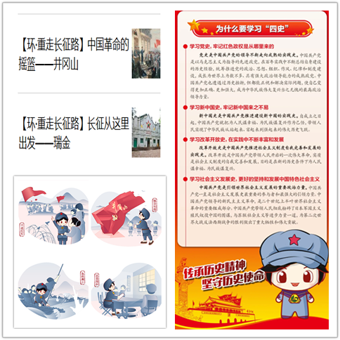 以新媒体平台“环能之声”为媒介,创新学习形式,以学生喜闻乐见的方式弘扬主旋律,开设“您有一份书单请接收”“诗中见史”“网上重走长征路”和“环宝儿解锁四史学习新姿势”等专题,有重点、有侧重讲述和学习党史、新中国史、改革开放史和社会主义发展史经典书籍,围绕长征概况、主要战役、红色遗址、民族英雄、长征记忆、长征诗词等主题,回顾中国近代一系列重要历史事件,深入了解革命先烈当年伟大的理想信念、体会革命先烈用意志和鲜血铸就的革命精神,厚植家国情怀。环工171李玮表示“斗地主网页版
