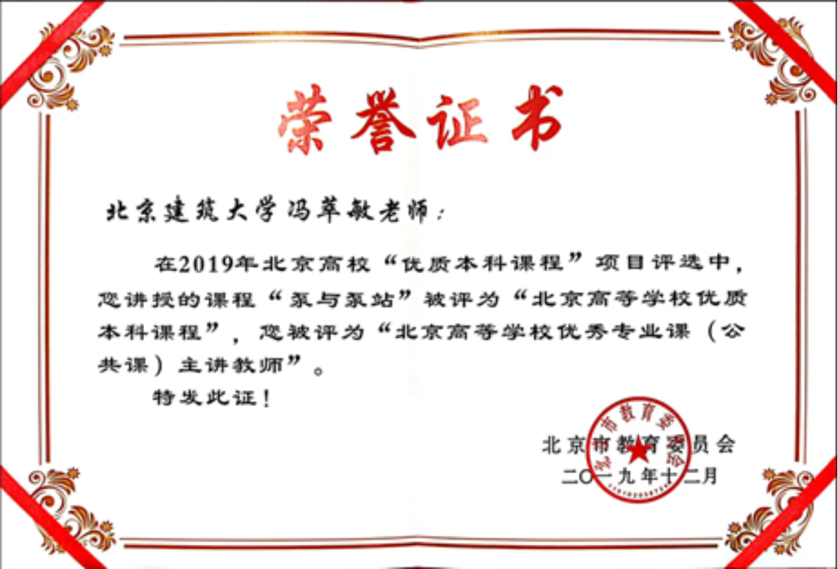 自2003年课程团队制作了“水泵构造”教学片起,经过二十多年的持续建设,《泵与泵站》课程日趋完善,课程于2010年被评为校级“优秀课程”,2014年被评为校级“精品课程”,2017年获校级教学成果特等奖,2018年获北京市高等教育教学成果二等奖。近5年指导本科生获国家级大学生创新创业训练计划项目5项,获北京市大学生节能节水低碳减排社会实践与科技竞赛等奖励共12项。《泵与泵站》课程2019年被评为“北京高等斗地主网页版优质本科课程”,2023年被评为“国家级一流本科课程”,也是我校第一门国家级线上金课。