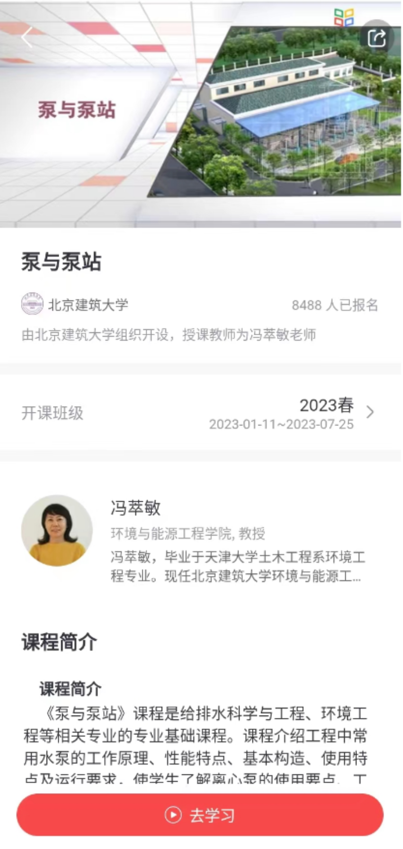 《泵与泵站》课程是全国给排水科学与工程专业的必修专业基础课程,也是北京高校优质本科课程。主要面向给排水科学与工程、环境工程等专业大三学生开设。《泵与泵站》慕课在学堂在线、中国大学MOOC、学习强国等多平台运行,可以作为土木、水利、生态、机电、采矿、石油、化工等相关专业本科和专科学生的选修课程,也可以作为相关专业工作人员继续教育和注册公用设备工程师执业资格考试的开放学习资源。