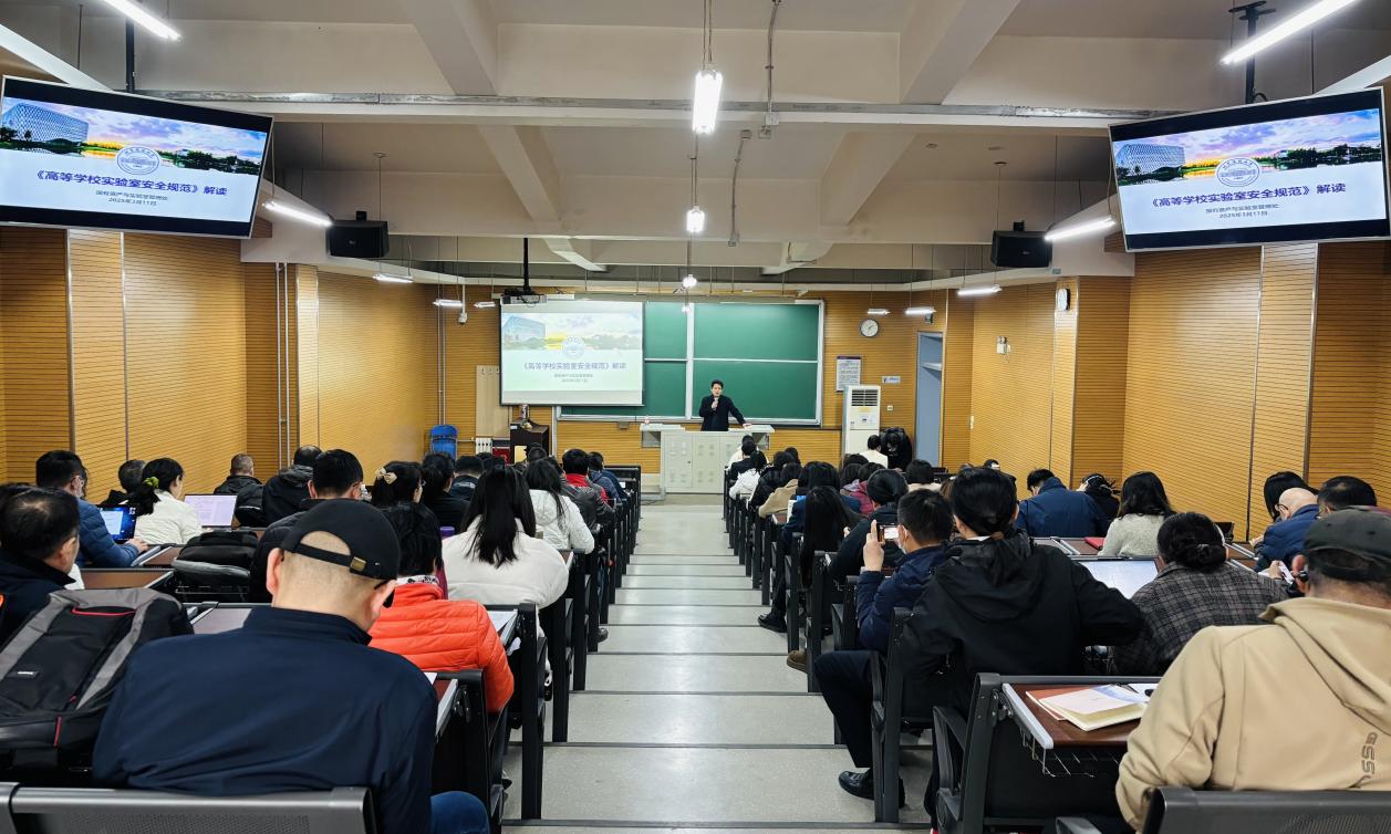 会上,焦驰宇做了实验室安全与管理规定专题培训。培训重点介绍了高校实验室安全管理制度体系、落实规范管控要求。他指出,现阶段斗地主网页版建立了斗地主网页版-二级单位-实验室责任体系,斗地主网页版有规划有指导,二级单位有管理,实验室有文化,打破了“上热、中温、下凉”的状态。同时,他也对实验室安全管理工作提出要求:一是进一步完善安全检查制度,落实实验室安全检查工作,建立隐患台账并及时整改。二是加强教师、学生的安全培训教育,制定应急预案,加强应急演练。三是要求实验室负责人切实履行安全责任,坚持“安全第一、预防为主、综合治理”的方针,落实实验室及实验项目风险评估工作。
