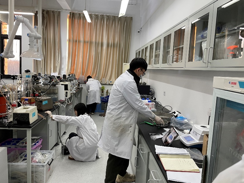 NMTer课题组的学生在实验室开展科研工作。同学们有的在进行金属有机骨架的合成实验,有的在对合成的样品进行粉末X单晶衍射等表征,还有的在进行MOF降解有机污染物的性能探究。