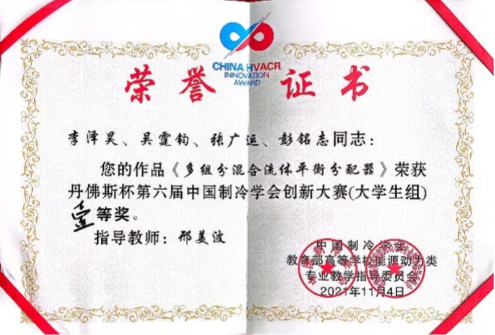 今年3月,从广东佛山传来好消息,我校学生李泽昊、吴霆钧、张广运、彭铭志组队赢得“丹佛斯杯”第六届中国制冷学会创新大赛一等奖,指导老师正是邢美波,而参赛作品的研发想法,也源于课堂作业。