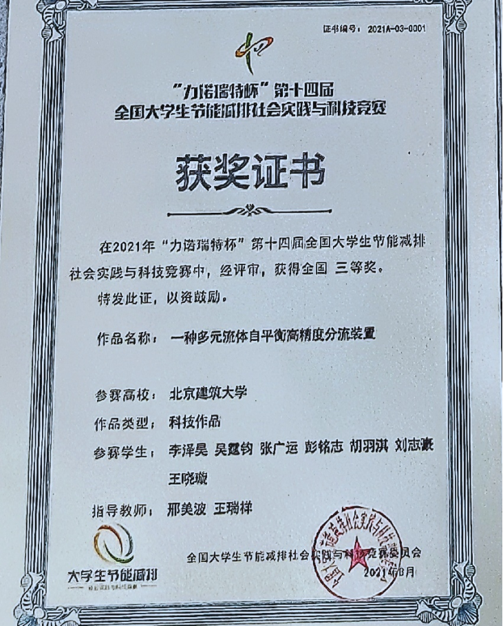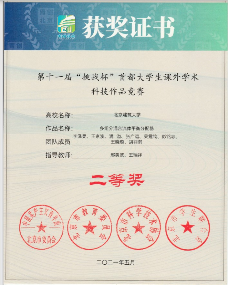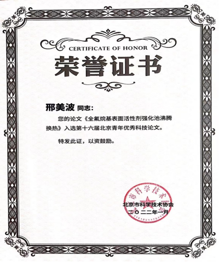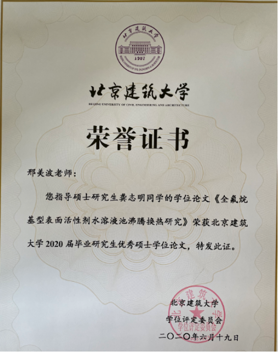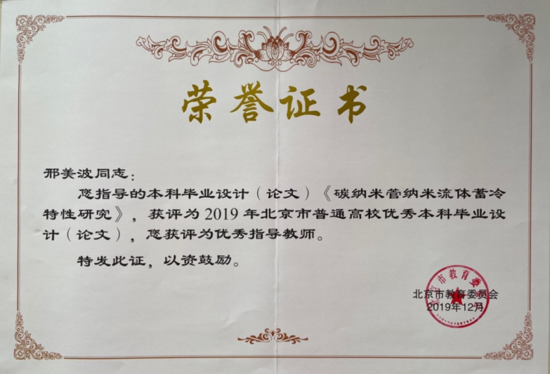 此外,邢美波还指导学生获得全国大学生节能减排社会实践与科技竞赛、“挑战杯”首都大学生课外学术科技作品竞赛、北京市大学生节能节水低碳减排社会实践与科技竞赛等赛事奖项。