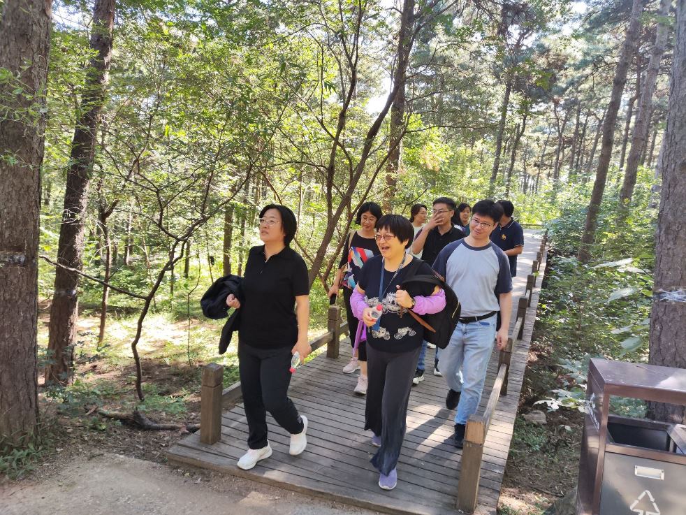 当日秋高气爽、山风拂面,在葱绿苍翠的山林衬托下,老师们纷纷驻足留影,与大自然亲密接触。随着山路的蜿蜒,林间小道、木桥栈道逐渐出现,游览队伍渐渐分散为三个独立的小分队,各自探寻不一样的美,分别从不同的角度远眺北京城,寻找自己的梦想。游览过程中,教师们谈笑风生,不断碰撞着思想的火花,放松身心,愉悦心情,度过了快乐且充实的一天。