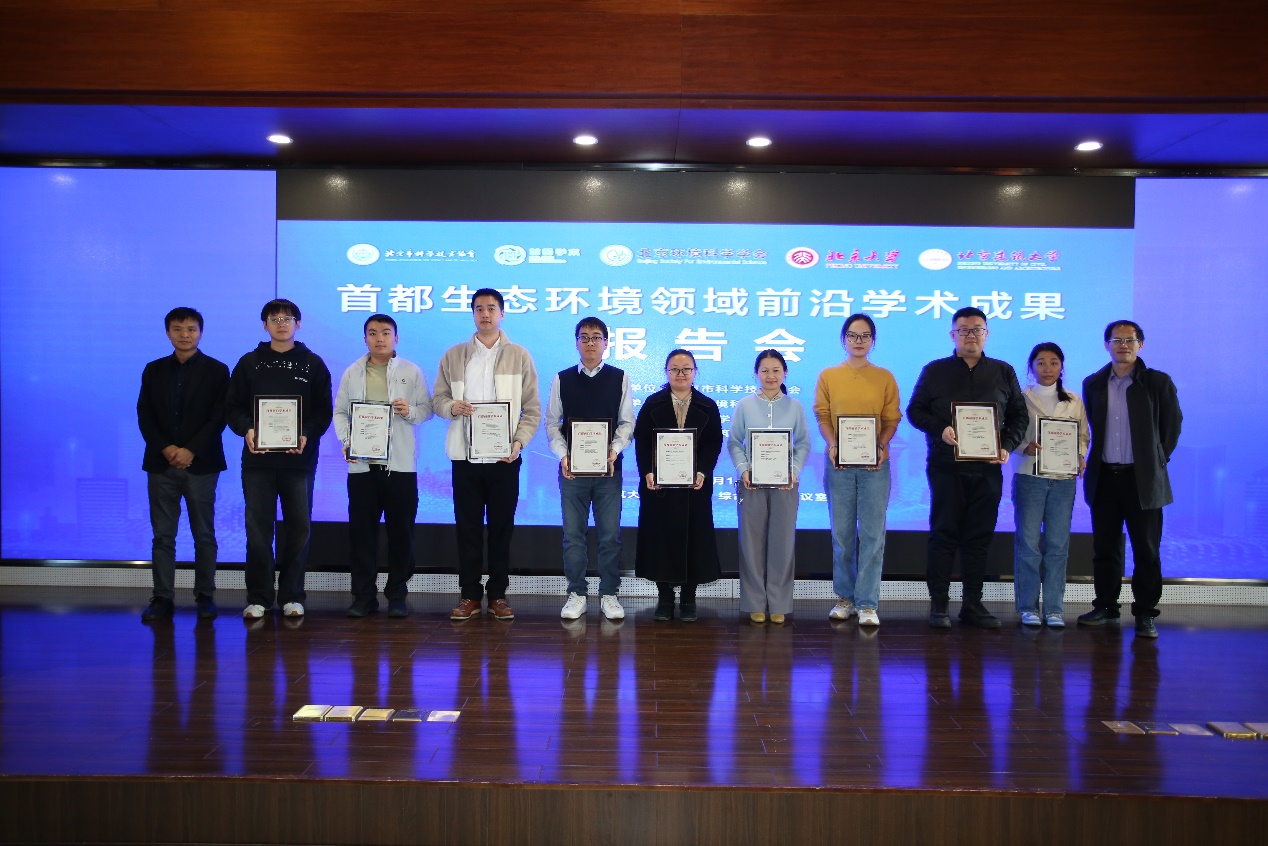 北京大学/北京环境科学学会科技创新分会主任刘文研究员介绍了成果遴选的流程,表示科技创新分会充分发挥了首都环境领域专家资源优势和学术交流平台的作用。首先,聚焦生态环境领域前沿热点、难点问题,确定主题与方向。接着,重点关注期刊影响力和相关性,交付中科院文献情报中心进行数据检索、定量分析。最后,邀请专家通过线下会议的方式,综合考虑文章影响力、主题方向、机构分布等因素后,最终遴选出20篇高质量学术论文。报告会上,齐飞、高成杰、汪长征、石炀分别为入选者颁发了首都前沿学术成果获奖证书。