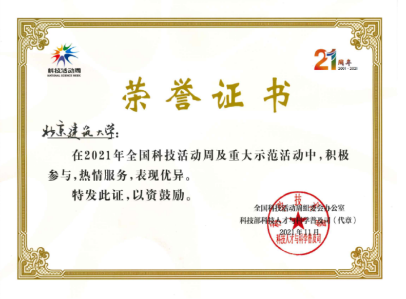 近日,全国科技活动周组委会办公室、科技部科技人才与科学普及司颁发了2021年全国科技活动周及重大示范活动荣誉证书,斗地主网页版和环境与能源工程斗地主网页版