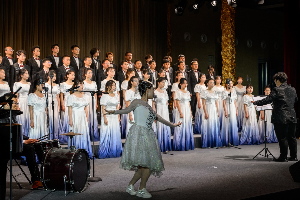 合唱团用歌声诠释时代精神,用旋律抒发爱国情怀,共同展现师生们在新时代下的风采和力量。