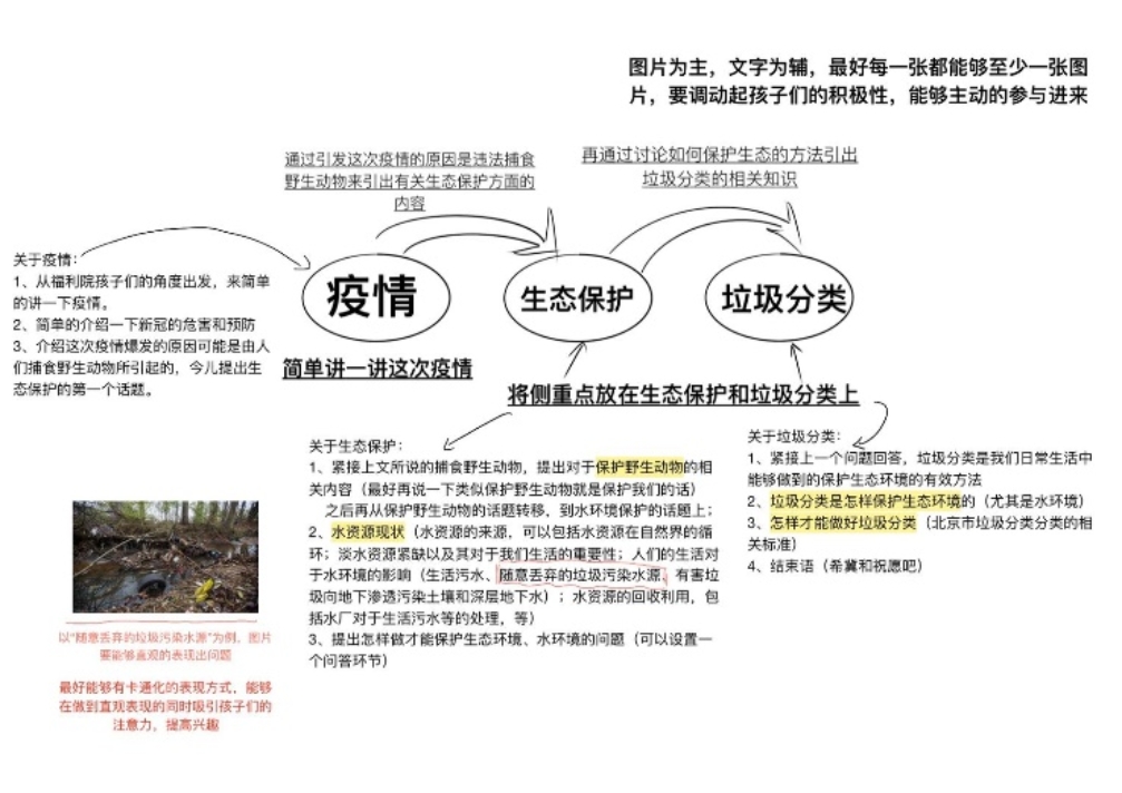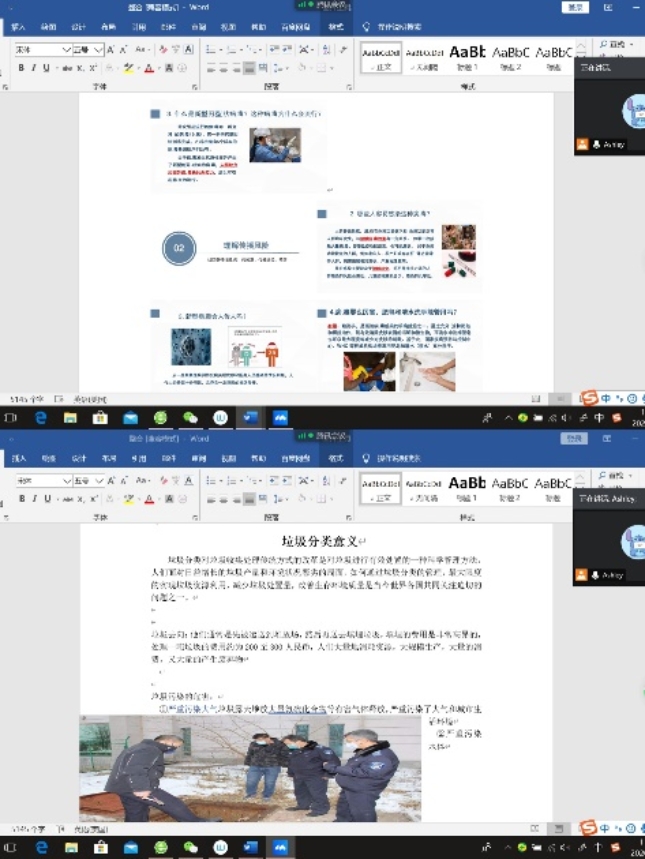 于七月底联系到北京市太阳村、北京市光爱公益斗地主网页版,确定宣讲对象。活动前期,经本团队讨论以及和公益斗地主网页版的老师确认,我们准备从疫情防控、野生动物保护、生态环保、垃圾分类四个方面开展宣讲。团队内分配各自任务查找相关文字视频资料、宣讲稿的制定、ppt制作。8月8日团队成员共同学习垃圾分类相关知识并分享心得。