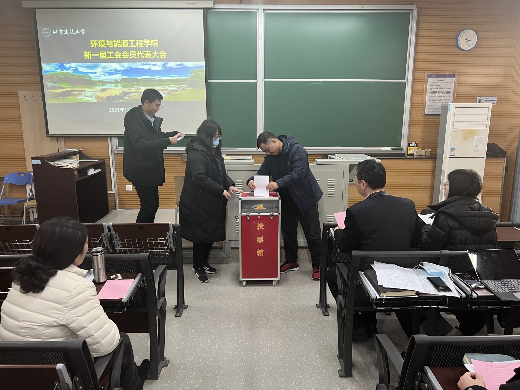 经会员代表大会无记名投票,史永征、冯宏岳、吴海峰、张秋月、张晓然、郝丽婷、寇莹莹等7人当选新一届工会委员会委员。
