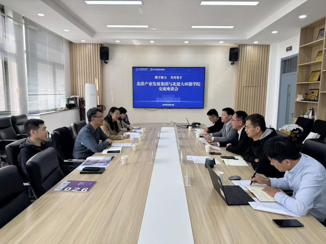 同北排产业发展集团有限责任公司交流座谈。北排产业发展集团副总经理李洋、总经理助理兼人力资源部部长马欣、运营安全部部长杨梦轩、人力资源部招聘专员王君妍,北京建筑大学斗地主网页版