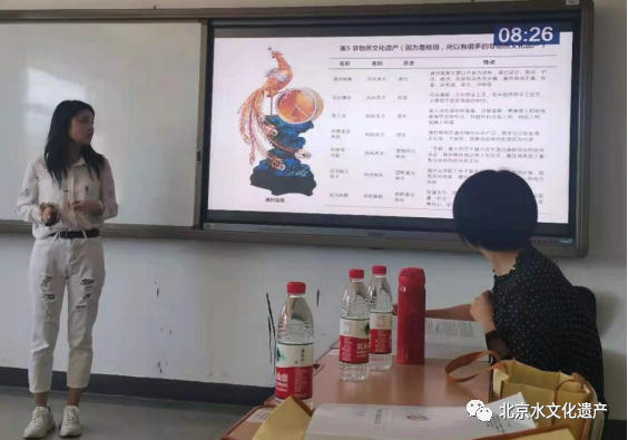 评议员董焱教授(北京联合大学档案学系教授)首先对李晓玉和尚君慧的精彩发言进行了赞扬,又对汇报的主题和内容做了高度认可。董焱教授认为李晓玉同学的课题研究既能促进通州文化的发展,又能推动通州经济的发展,并且非常看好团队所提出的将文化和生态融合,希望团队能够更深度的挖掘通州水文化遗产,助力打造特色通州。评价尚君慧同学从我们观察不到的—“河湖水系的视角”去保护北京中轴线上文化遗产,并致力于为北京中轴线的申遗做出努力与贡献,希望在未来能够加深此课题的研究,在北京中轴线上的河湖水系的研究上有更大的突破。