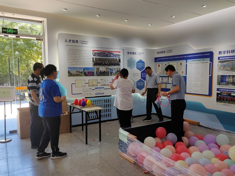 楼B座门厅内组织开展了“带着梦想勇往直前”趣味活动。本次活动以写心愿、踩气球、砸彩蛋为活动形式,精心设计活动细则,突出现场氛围和心理建设,将活动性、趣味性、获得感溶为一体,吸引了广大教职工积极参与。