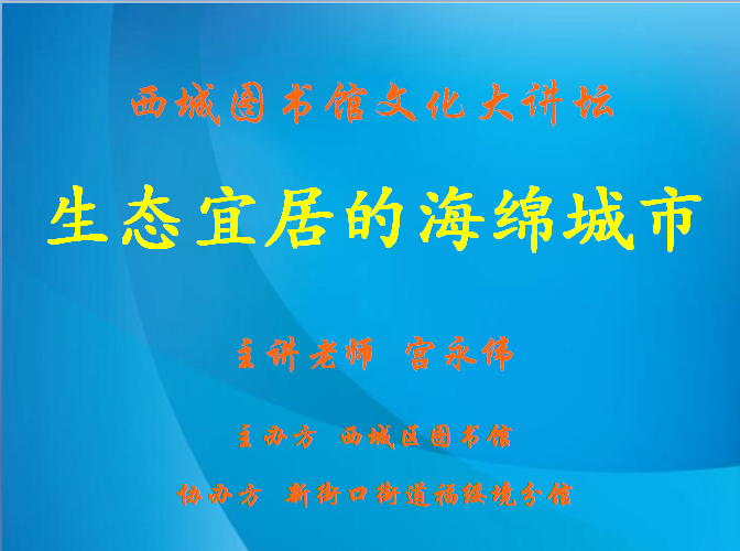 4月30日,由北京市西城区图书馆文化大讲坛系列活动在线上成功举办,邀请我校宫永伟教授为广大读者、民众进行海绵城市建设科普专题讲座。