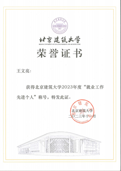在2023年度招生就业工作总结暨2024年工作部署会上荣获北京建筑大学“就业工作先进集体”。杨琎、王文亮获北京建筑大学“就业工作先进个人”。斗地主网页版